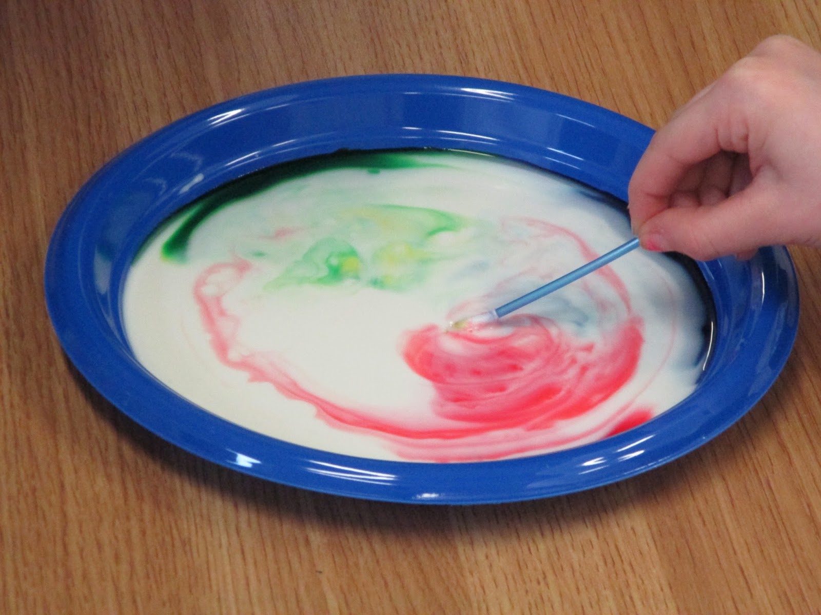 We were very curious when we saw our teacher put milk, washing up liquid and food colouring on the sink!!
