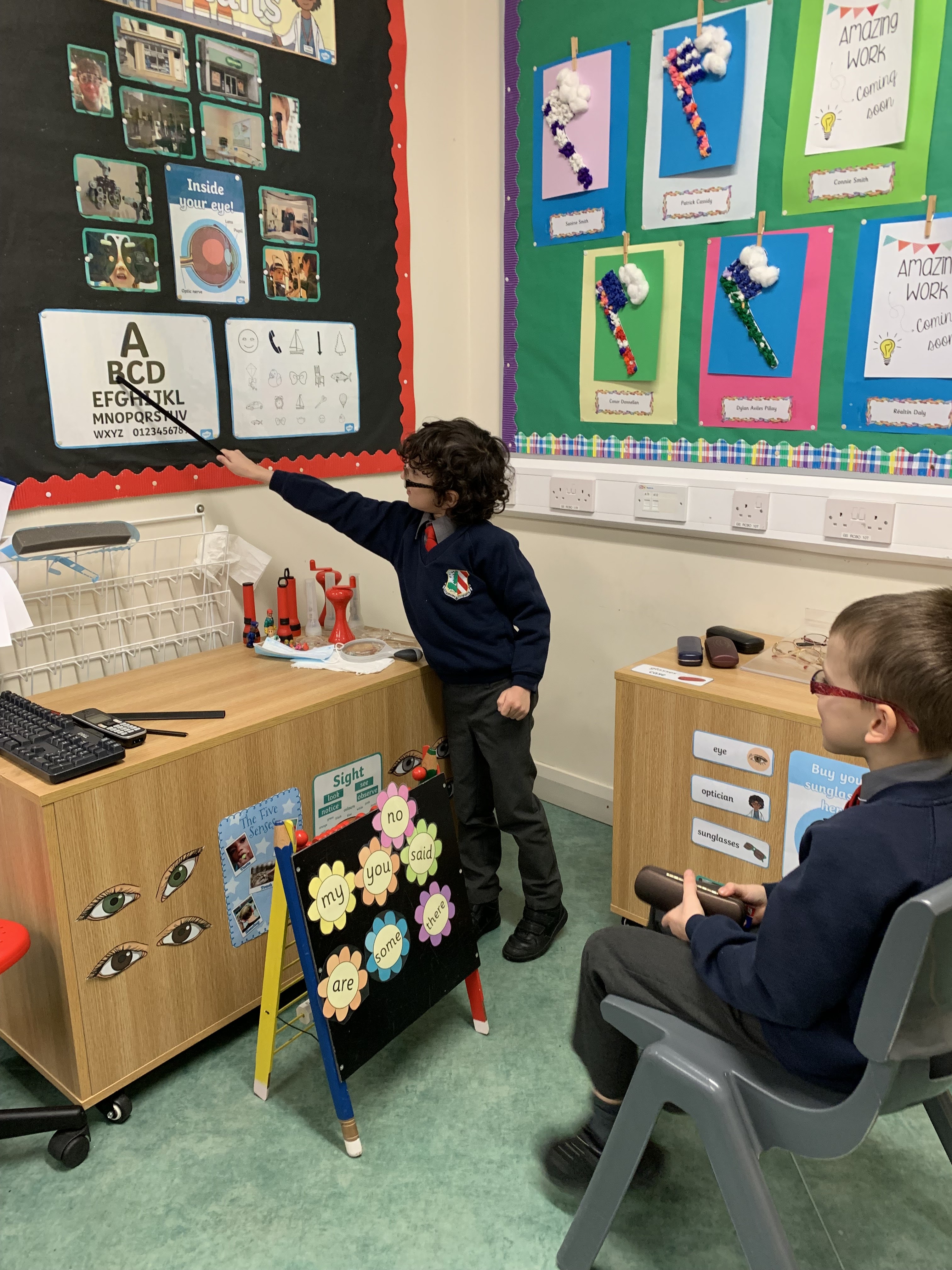 The children recently enjoyed exploring the theme of 'Spring' during Aistear. The girls and boys observed and discussed signs of spring on a nature walk and examined changes in plant and animal life during this seasonal change.